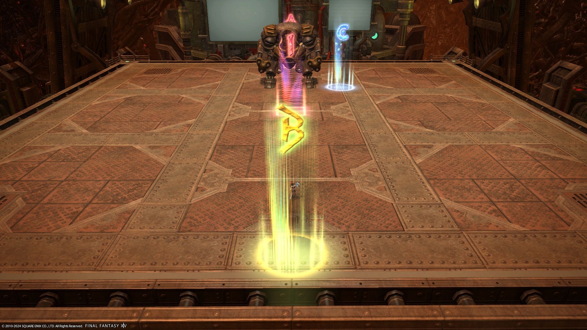 Because the Bibliotaph can spawn with the first Run Program, the MT will start the fight pulling the boss slightly North-East of the center.