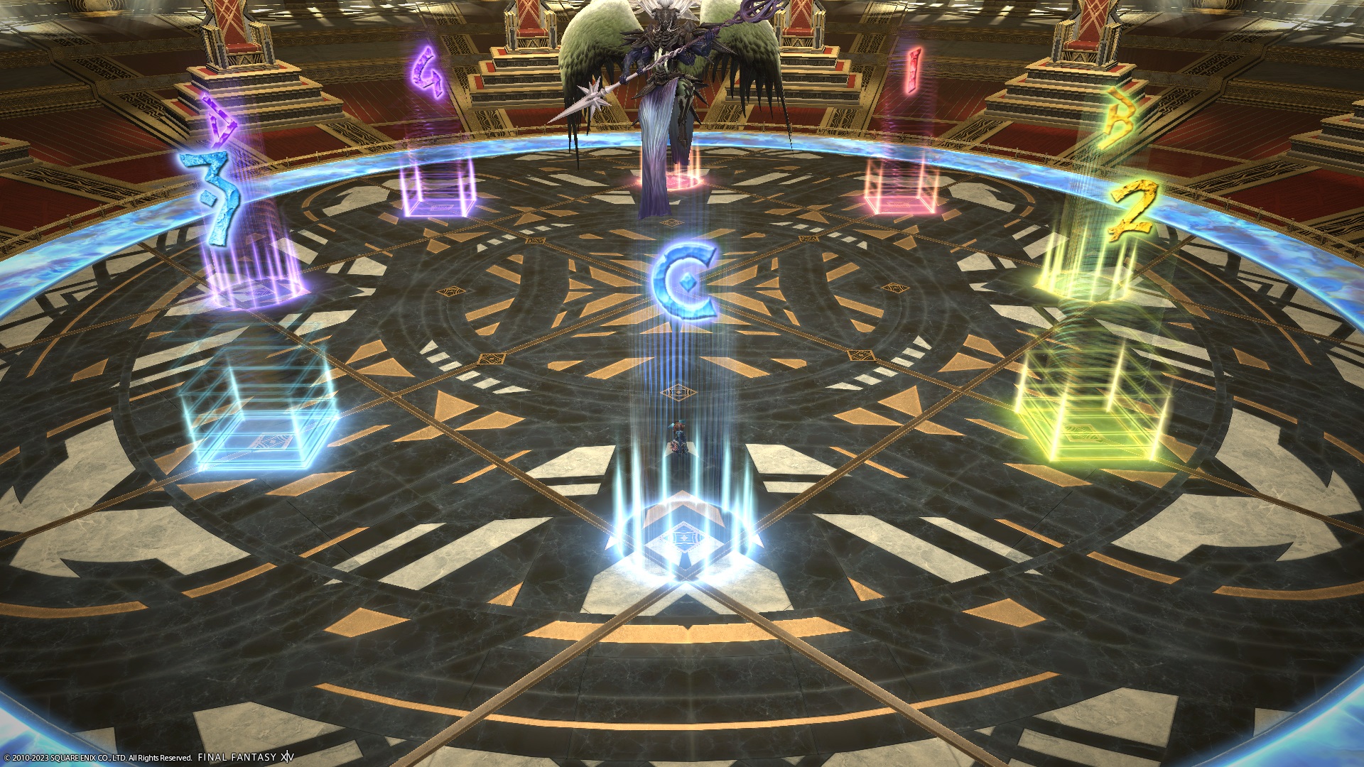 7. Reset your positions on opposite markers. The boss will then cast Divisive Overruling. | ![]() |