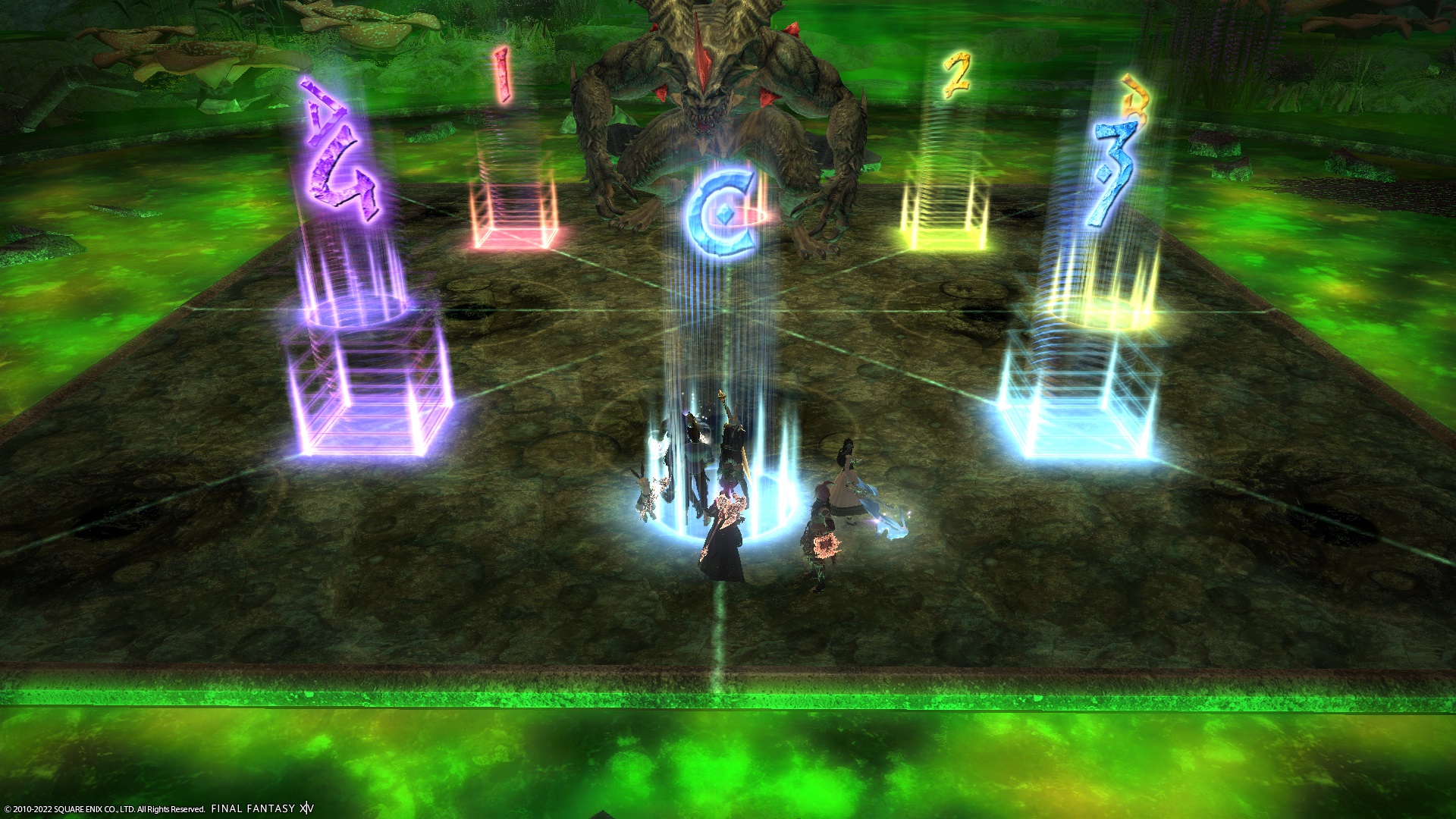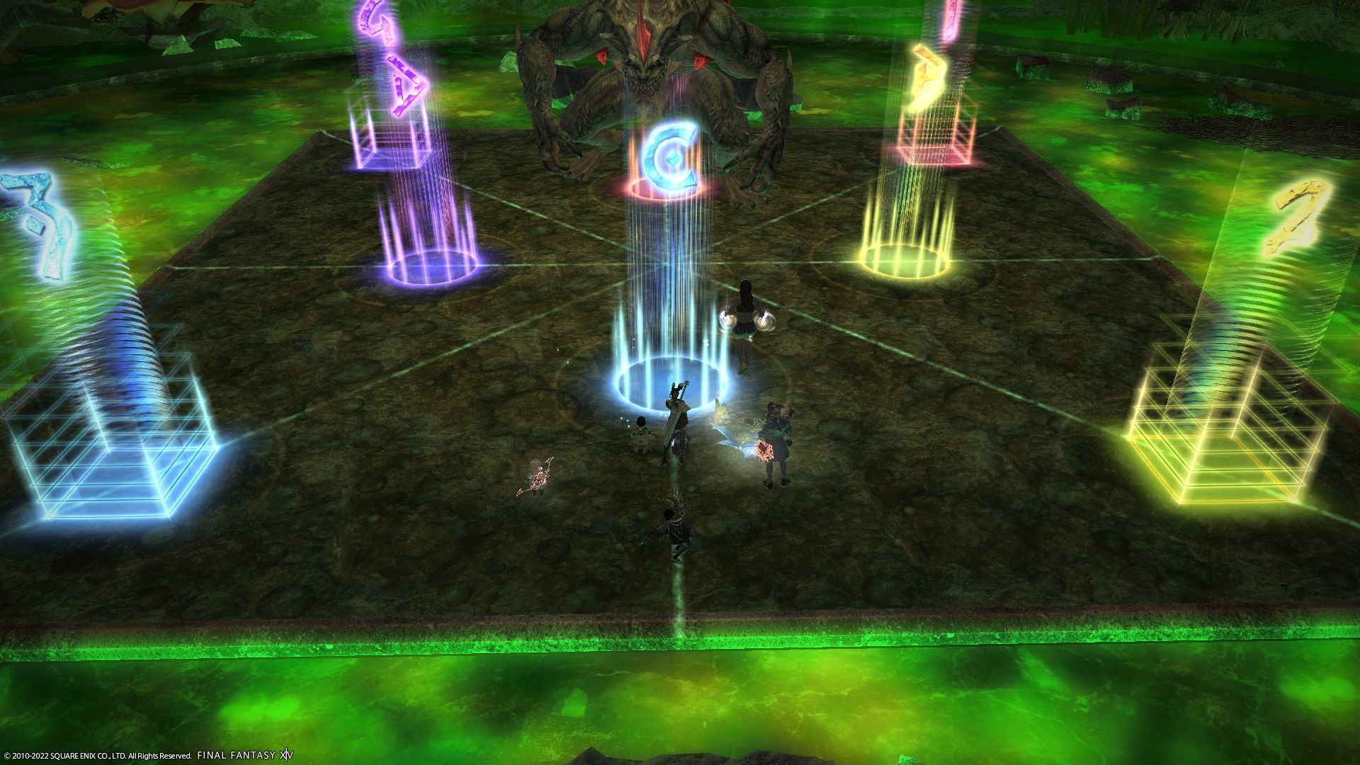 There aren’t any real fixed set of markers used for this fight- this set places markers on the potential poison puddle positions: