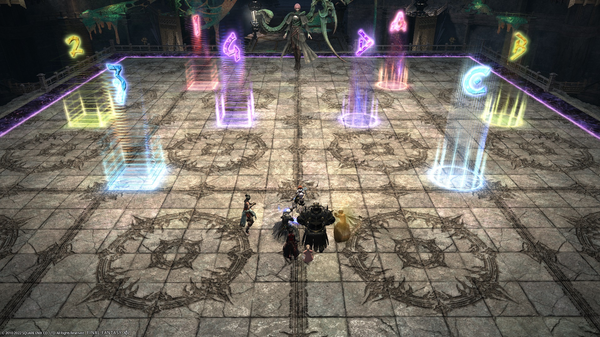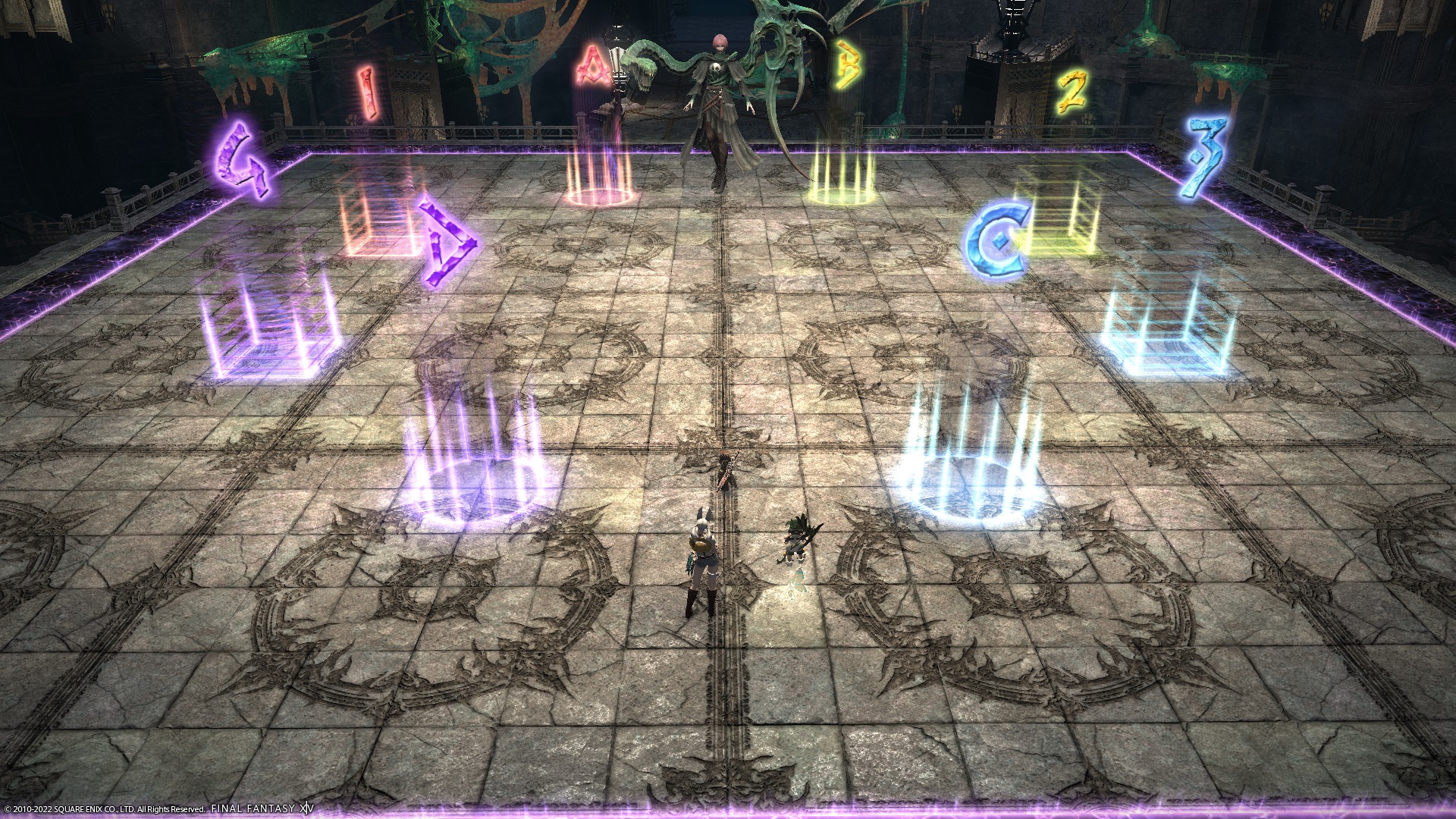 Letters are N/S, while numbers are E/W to also help with that grouping when dodging the fan AoEs.