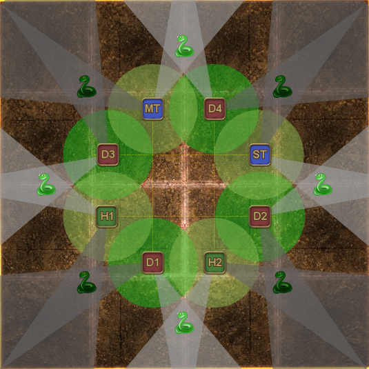 In the event the boss uses Nest of Flamevipers when the clones are 2x Dragons, the spread positions are as follows: