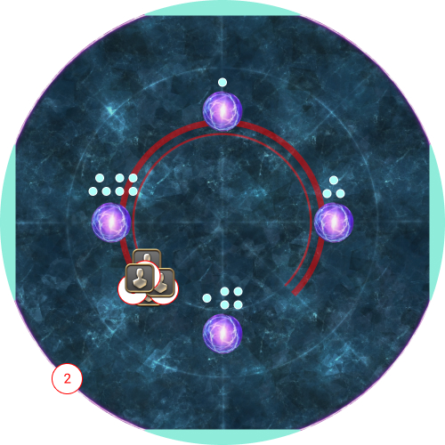 6. Second round of AoEs resolve together with the tower. All players swap sides.