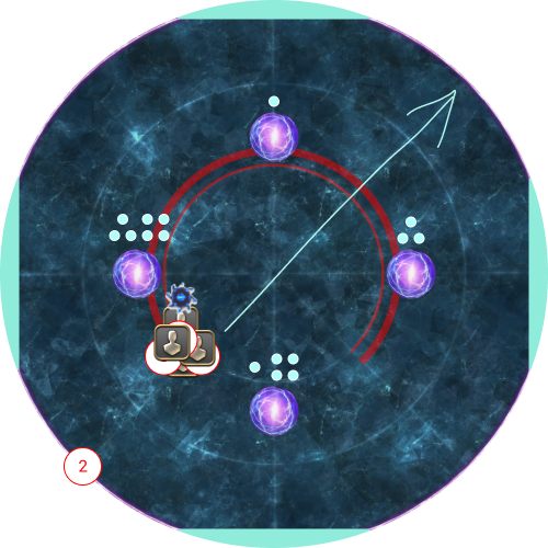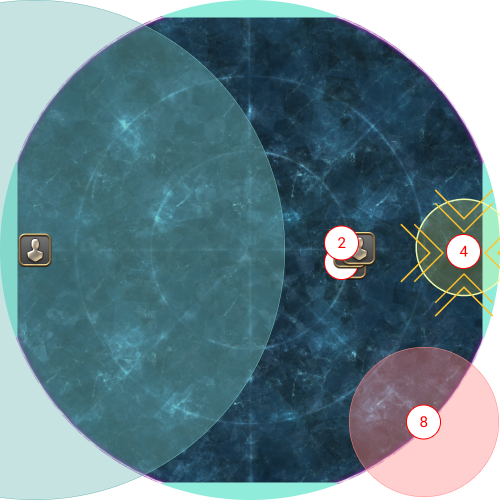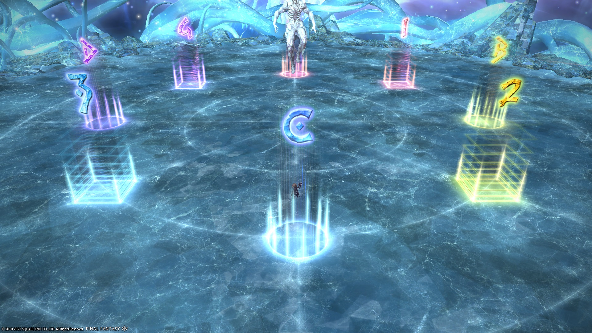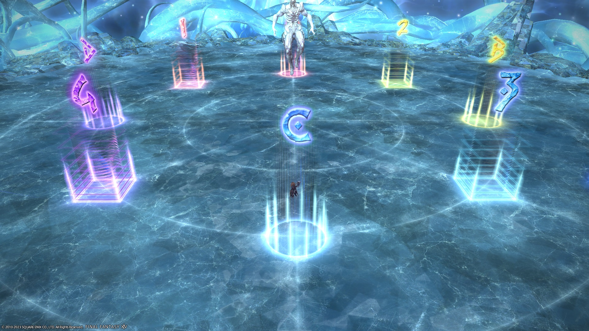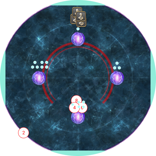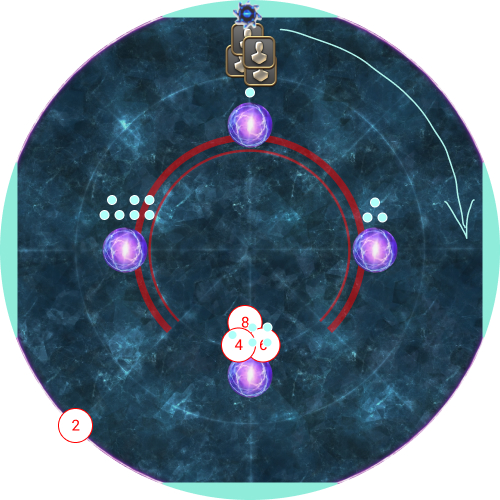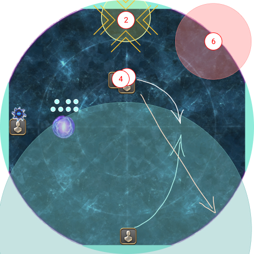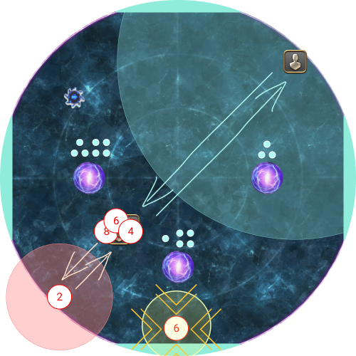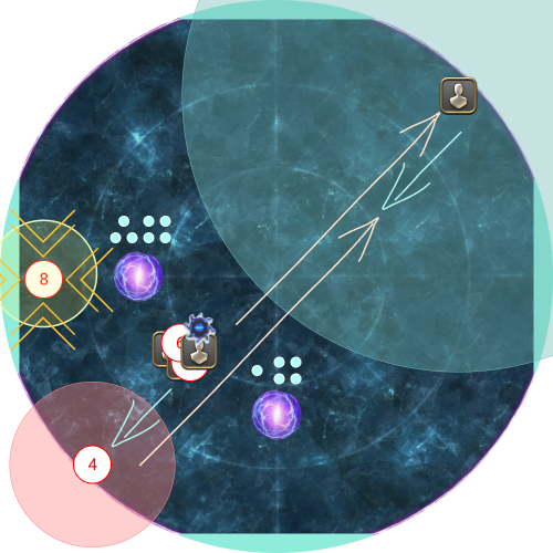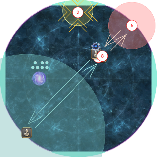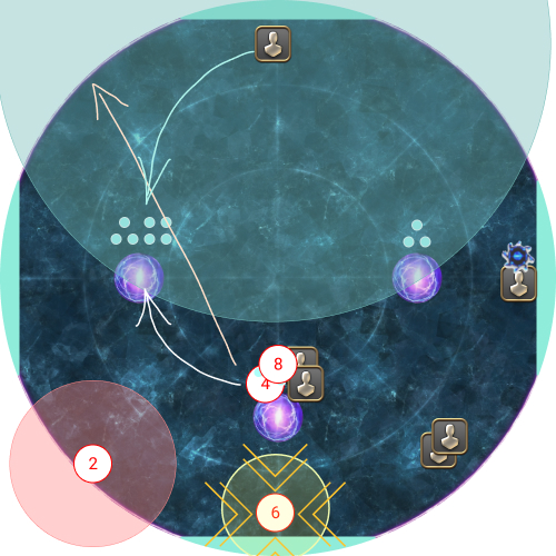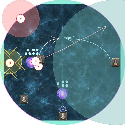 8. Third round of AoEs resolve together with the tower. The next pair of players (the fourth marked player and the player numbered 8) takes over the previous two player's positions. | ![]() |