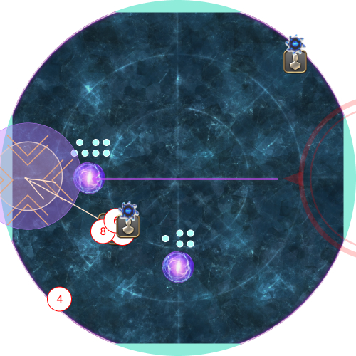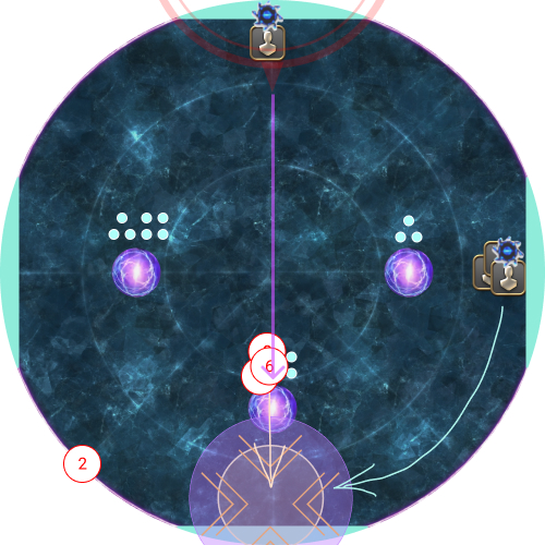 - Fire (players 6 and 8) goes between the orbs numbered 1 and 3.