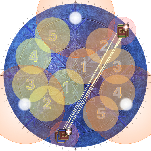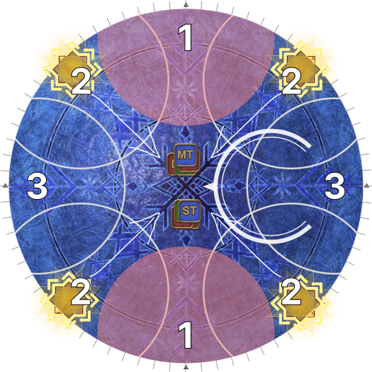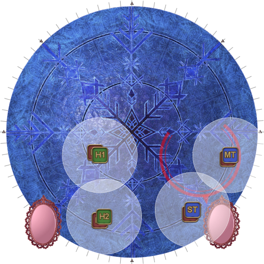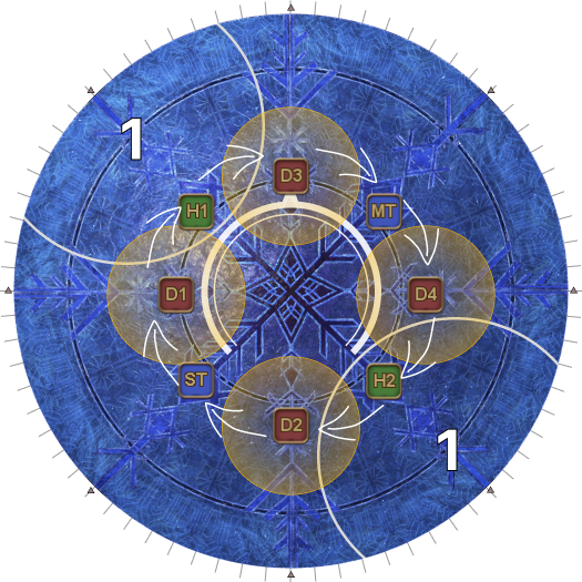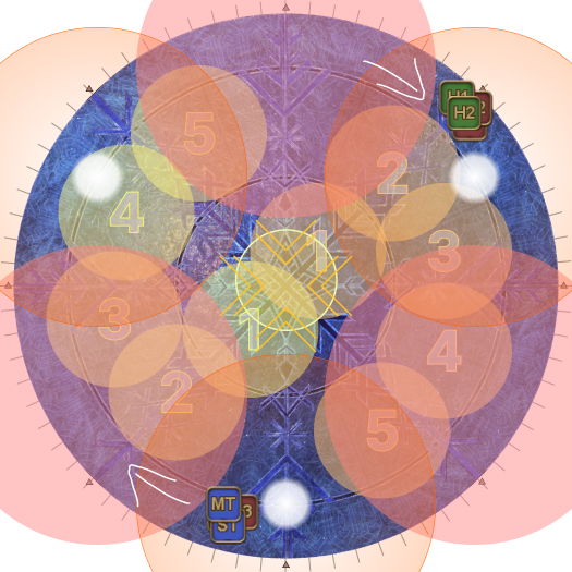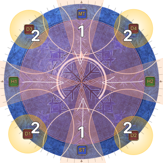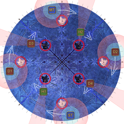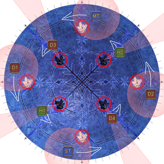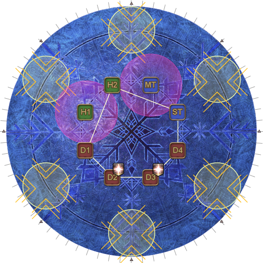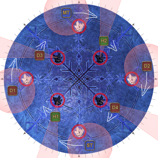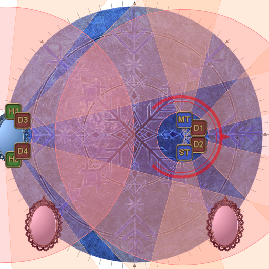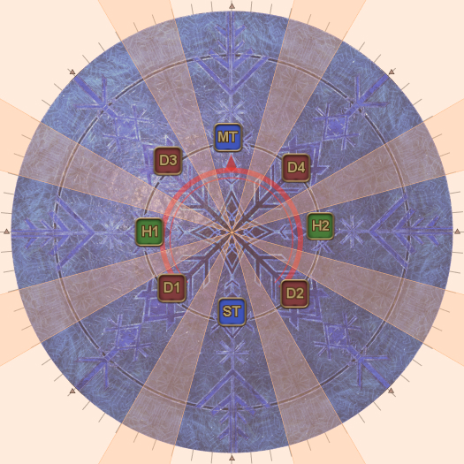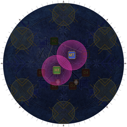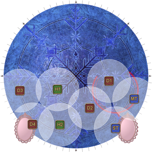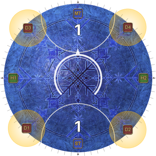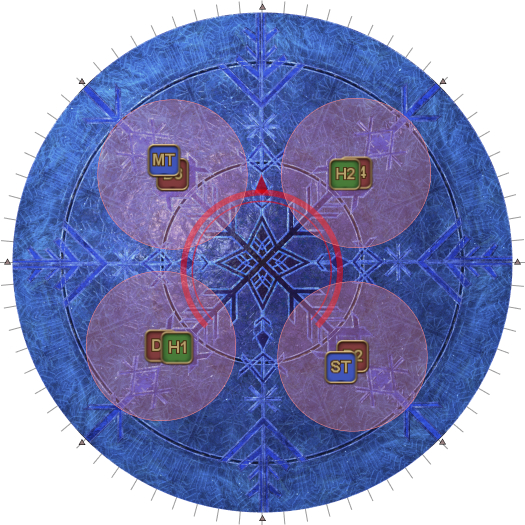 This may necessitate that the entire party rotate 45 degrees clockwise from their spread positions. (i.e: Rotate if the AoEs spawn on the first white circles.). | |