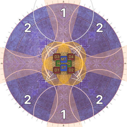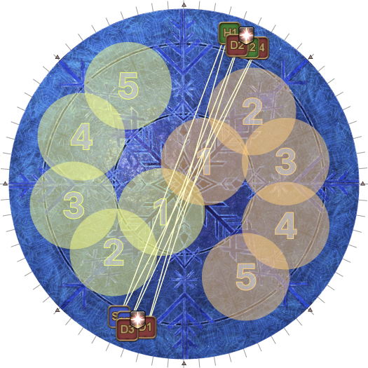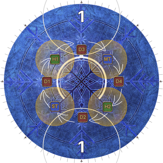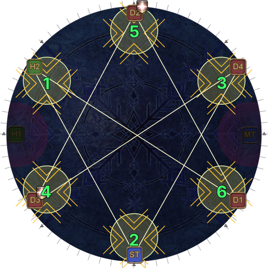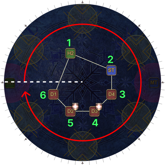 | 19. At the same time, we need to sort out the tethers. Starting from H1 and going clockwise, count up the tethered players. (It will be easier for the DPS to count anti-clockwise from D1 instead.) | |