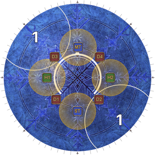 | Tank/Healers dropping AoEs, Circles on a cardinal | DPS dropping AoEs, Circles on a cardinal |