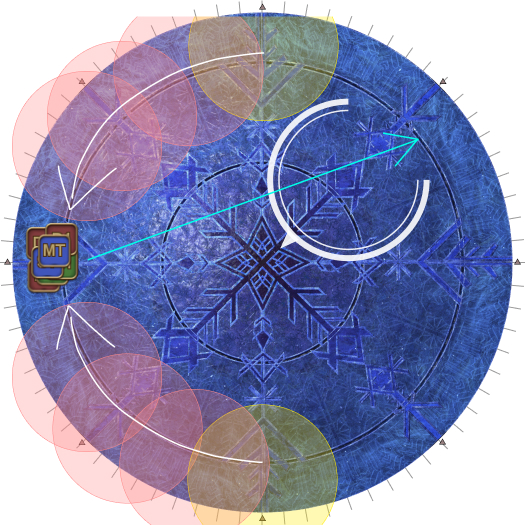 | Case 2: The Usurper of Frost is 90s degrees from both parties. In this scenario, both parties move clockwise slowly, and end up directly in front and behind the Usurper of Frost. | |