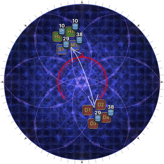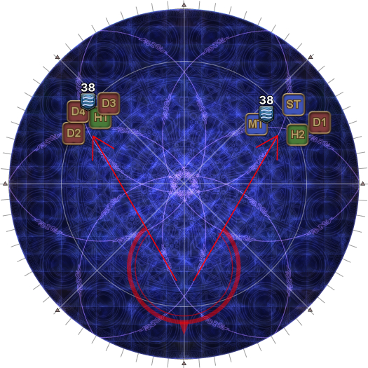 (In this example, H1 + H2 have the 10s Water, and D1 + D2 have no debuff, so H1 and D1 will be swapping sides.) | |