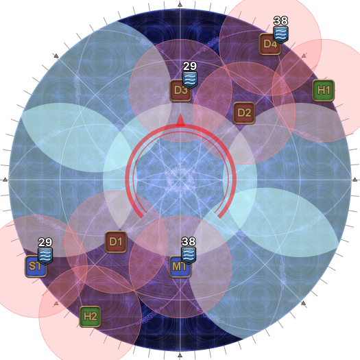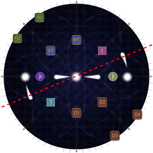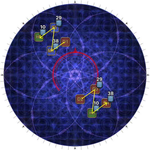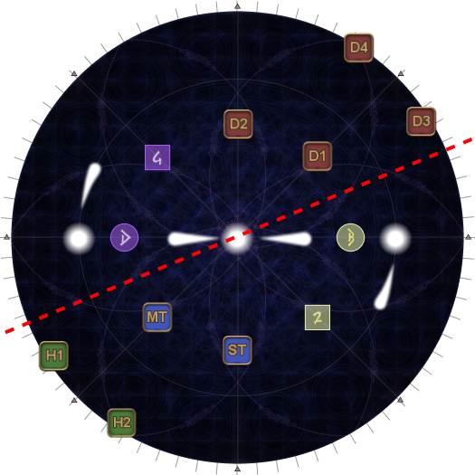 These will be your spread positions later. (In this example, the lights start W and E and go clockwise, so the "base T/H" group references W, and the "base DPS" group references E. Rotating 45 degrees in the opposite direction means the "base T/H" group goes SW, and the "base DPS" group goes NE.) | |