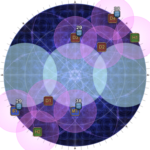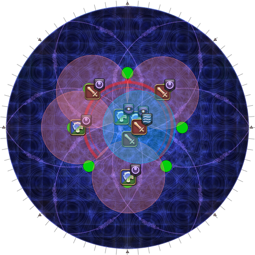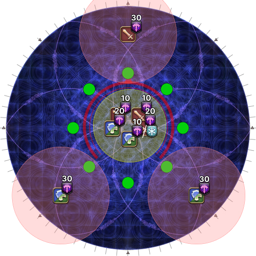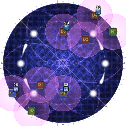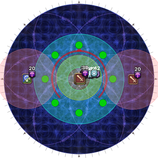 | 18. The AoEs now resolve for real. The AoEs will appear at the points that pulsed earlier for a total of six waves. | |
